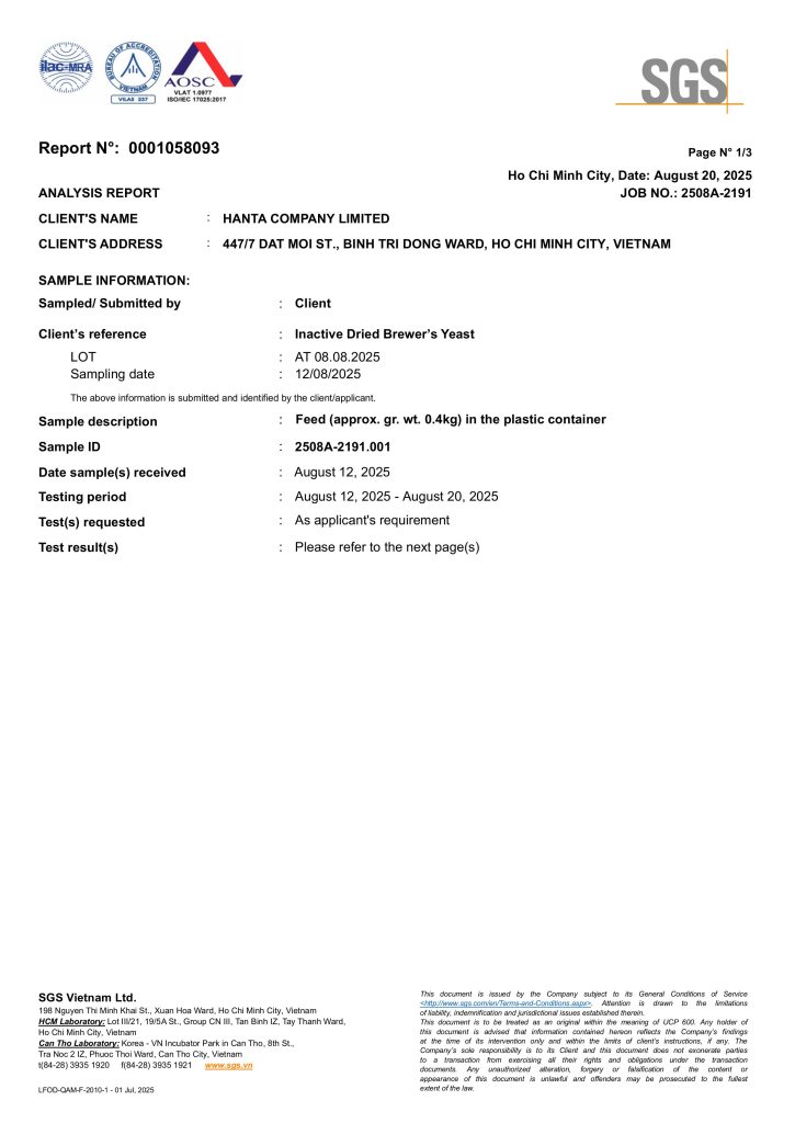 Brewer Dried Yeast | SGS Test | Update Sep.2025